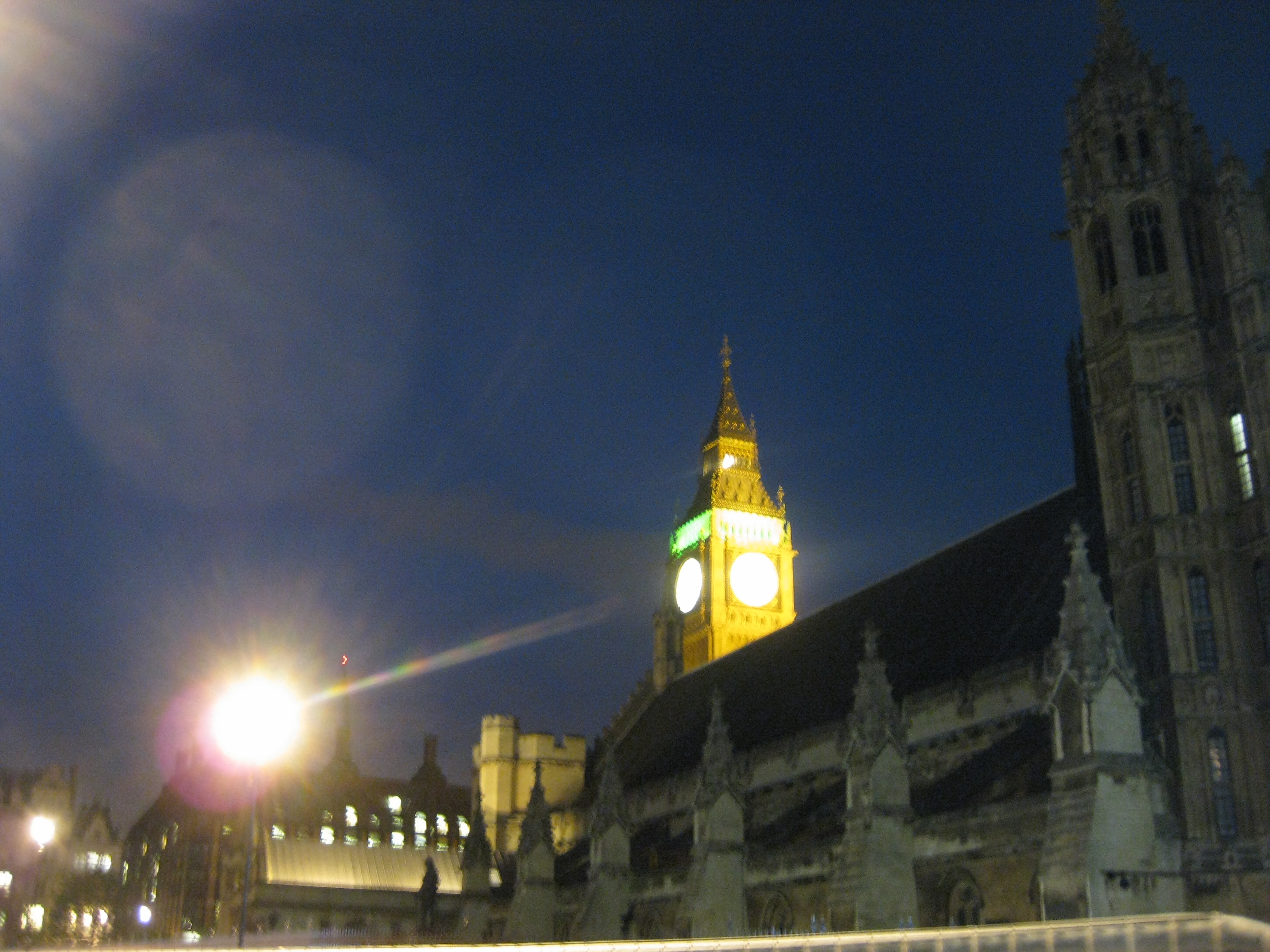 After about 3 hours in the restaurant, we took a train to Big Ben and Westminster Abbey. Unfortunately, it was closed, but we got some very good night shots. We started experimenting with moving the camera around and got some very cool laser-like effects, such as my favorite one where I got it to look like Big Ben was destroying some “intruder” on the ground. We did get briefly separated – at night, in downtown London – but we found each other and made it back to the hotel safely.
